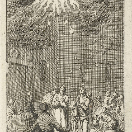 Heilige Geest daalt neer op Maria en apostelen, Jan Luyken, 1681 Rijksmuseum