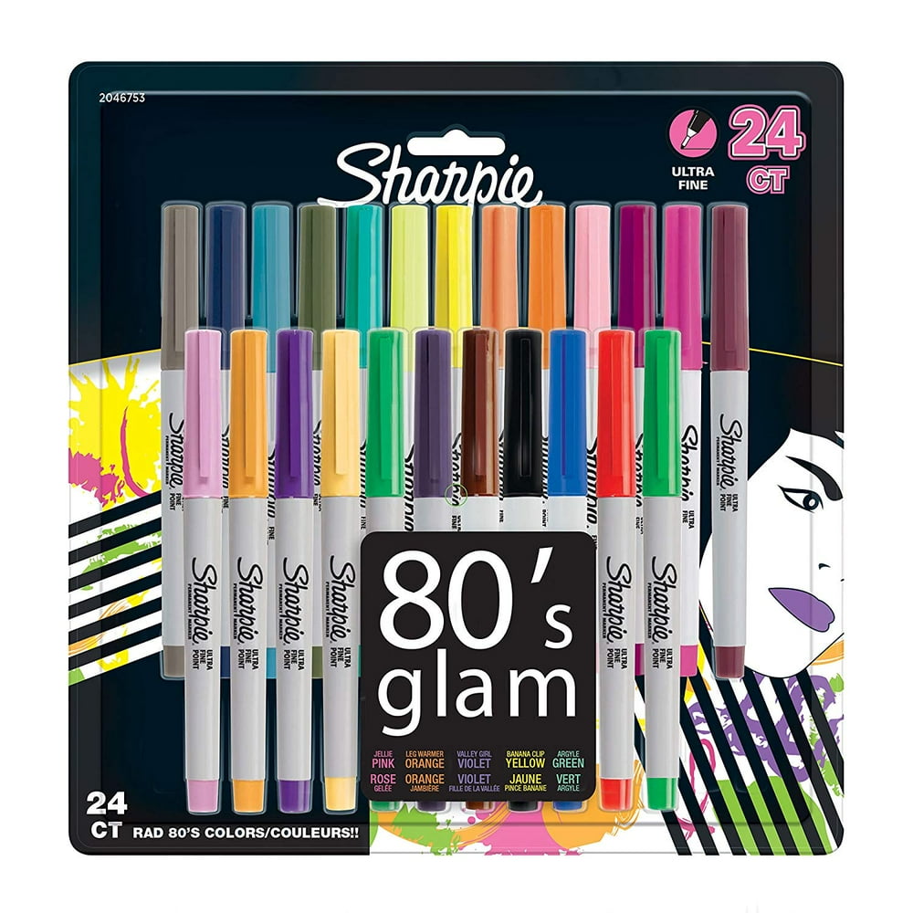 Sharpie Permanent Markers, UltraFine Point, 80s Glam Colors, 24 Pack