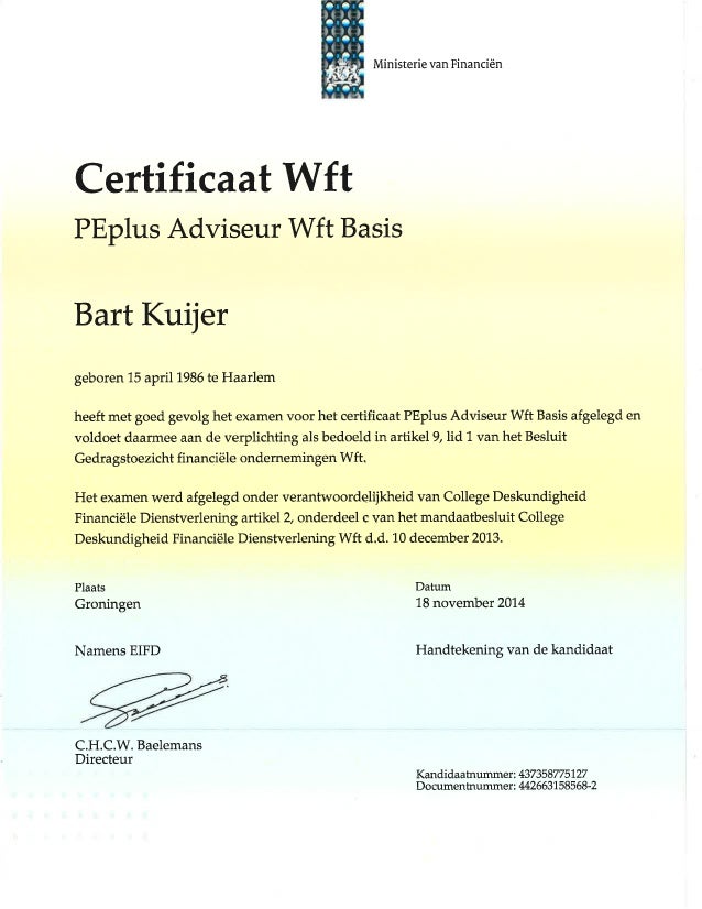 Certificaat Wft PEplus Adviseur Wft Basis