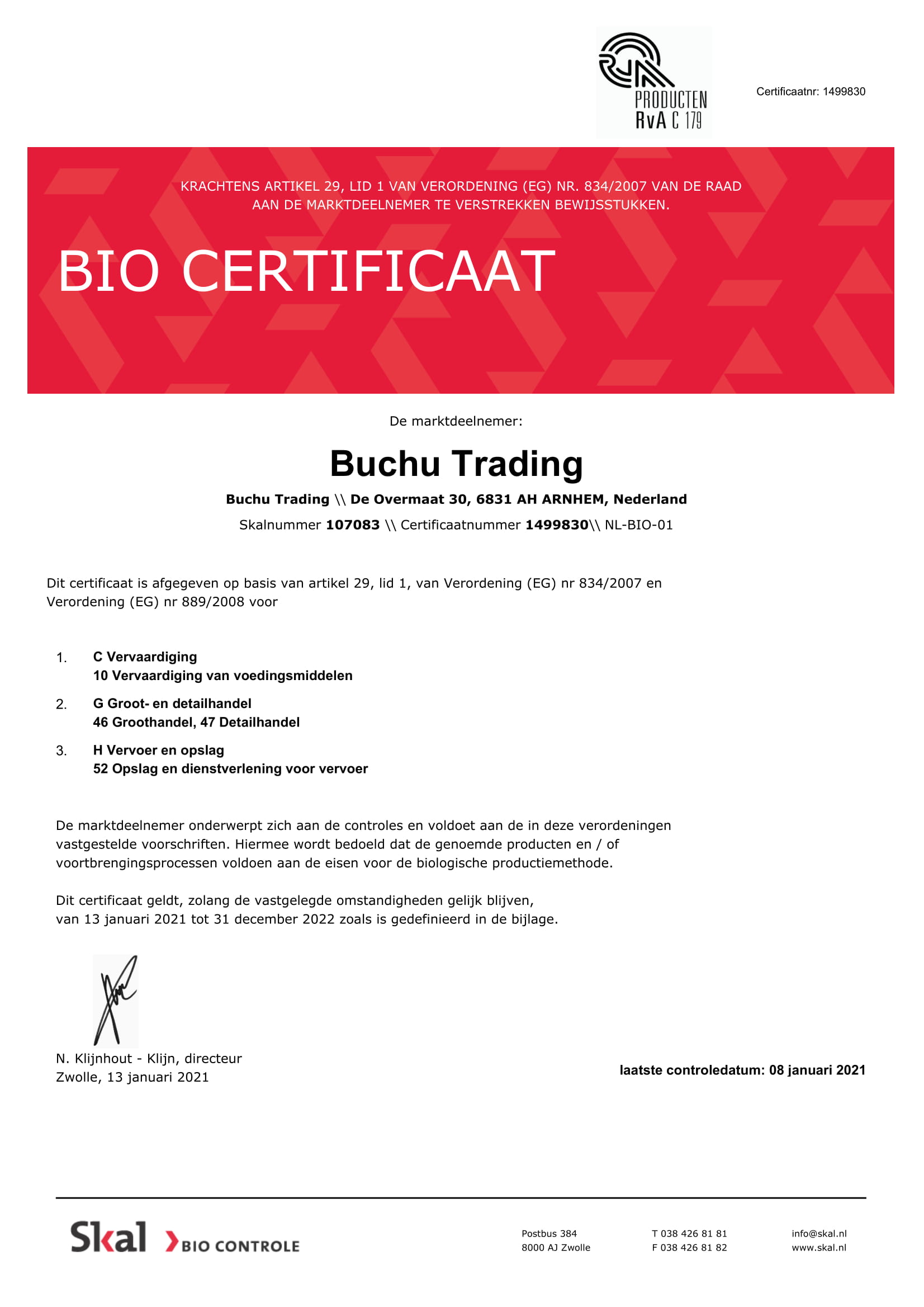 Skal Bio Certificaat BUCHUNL